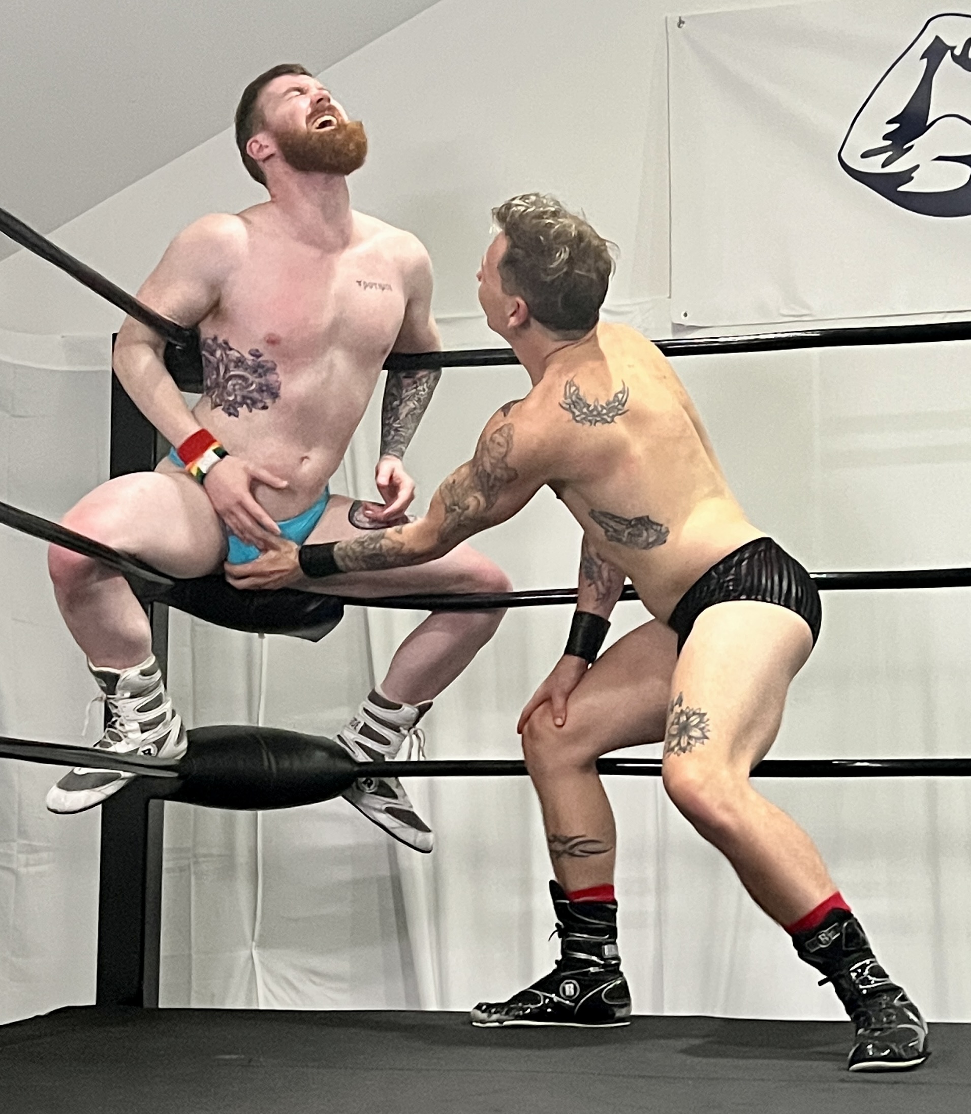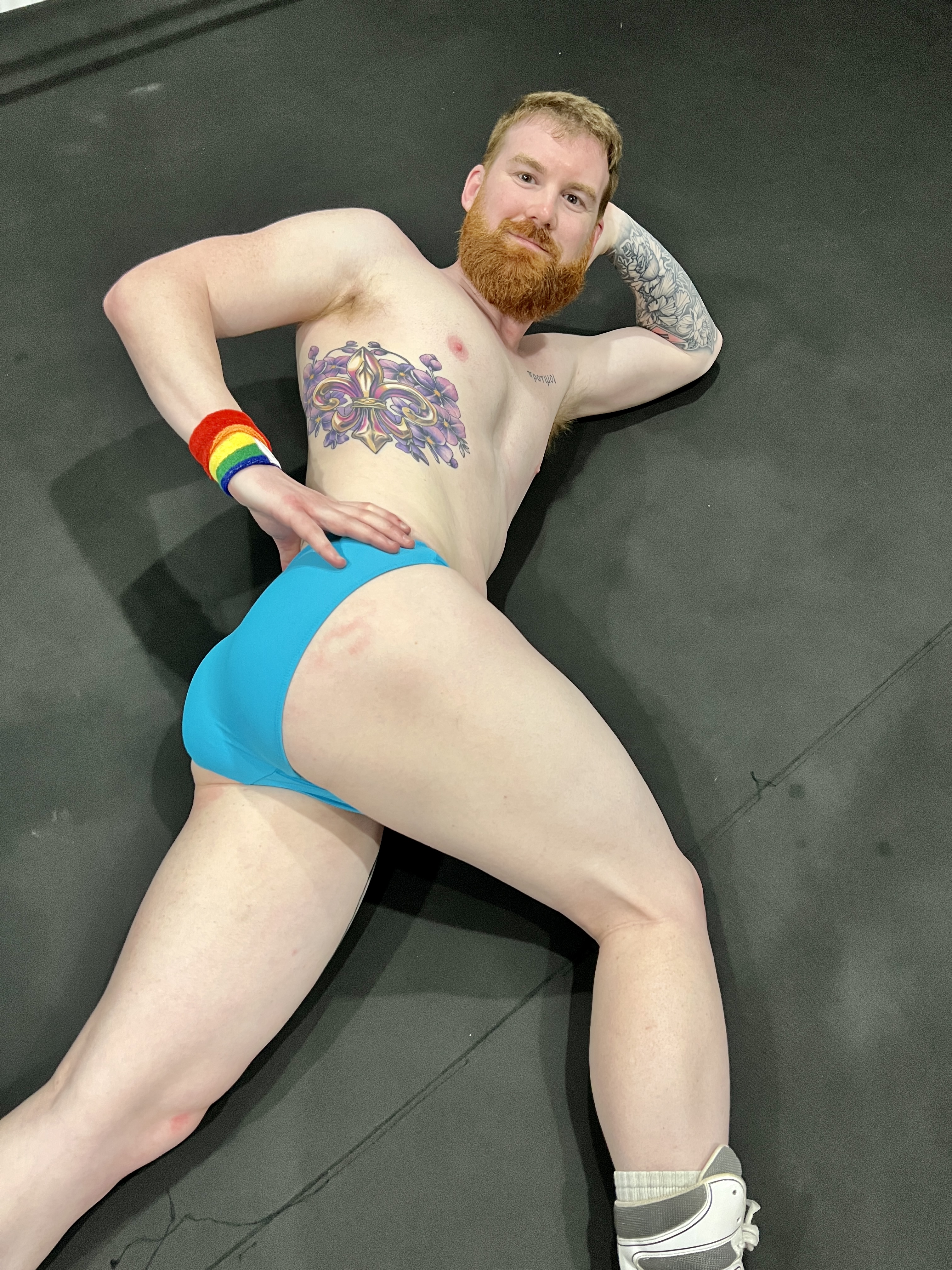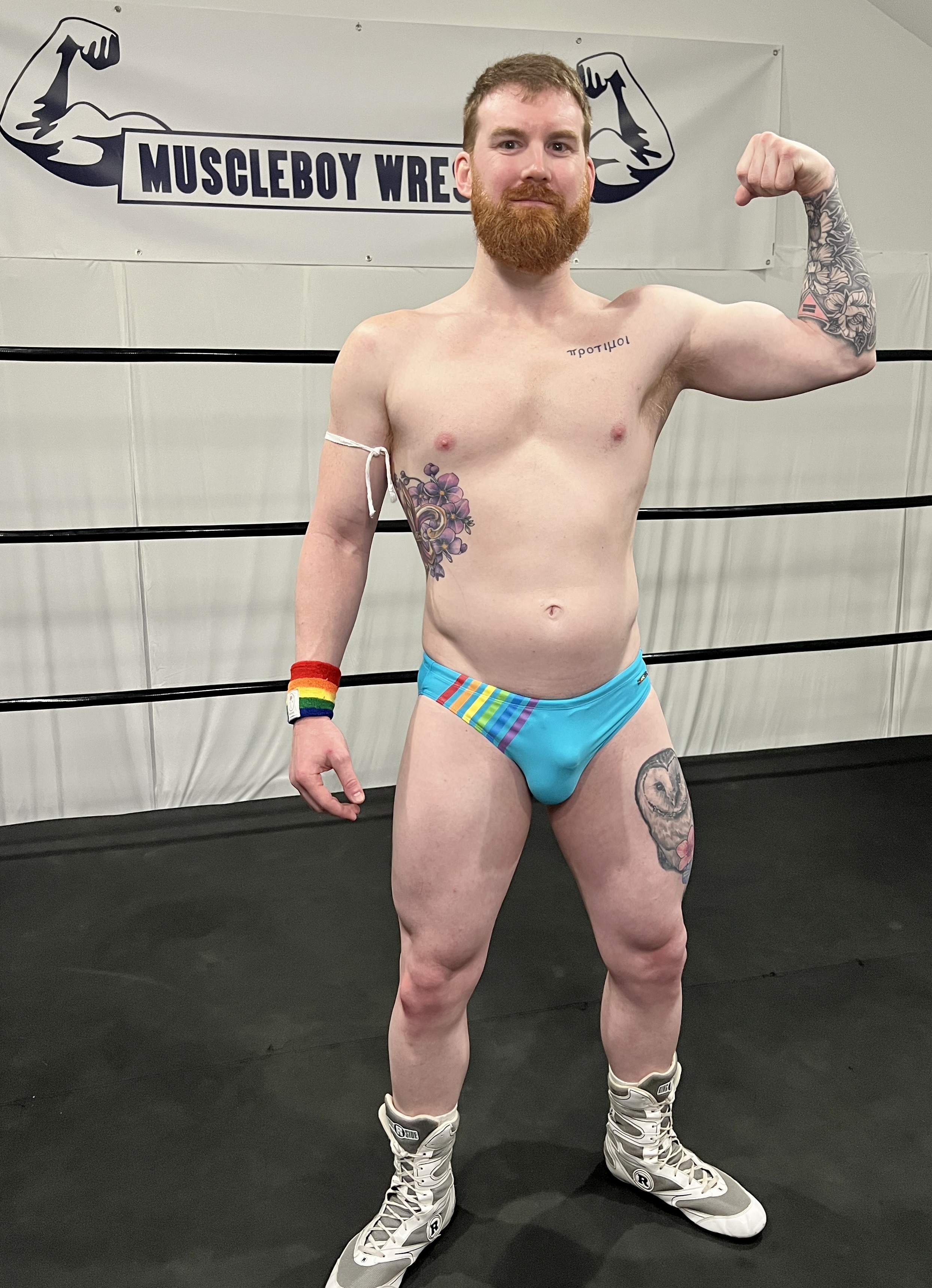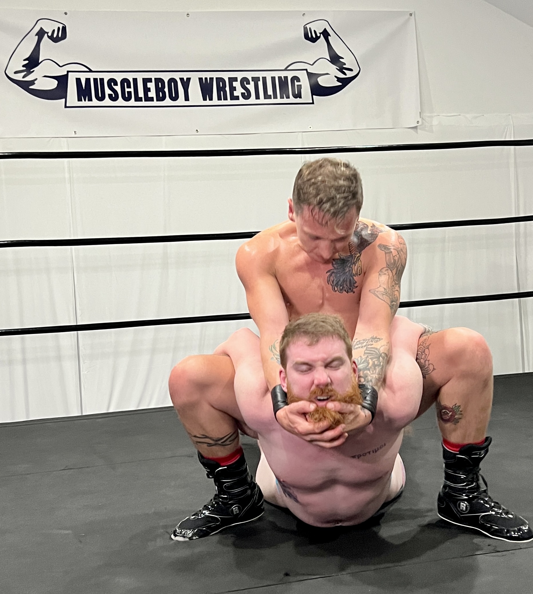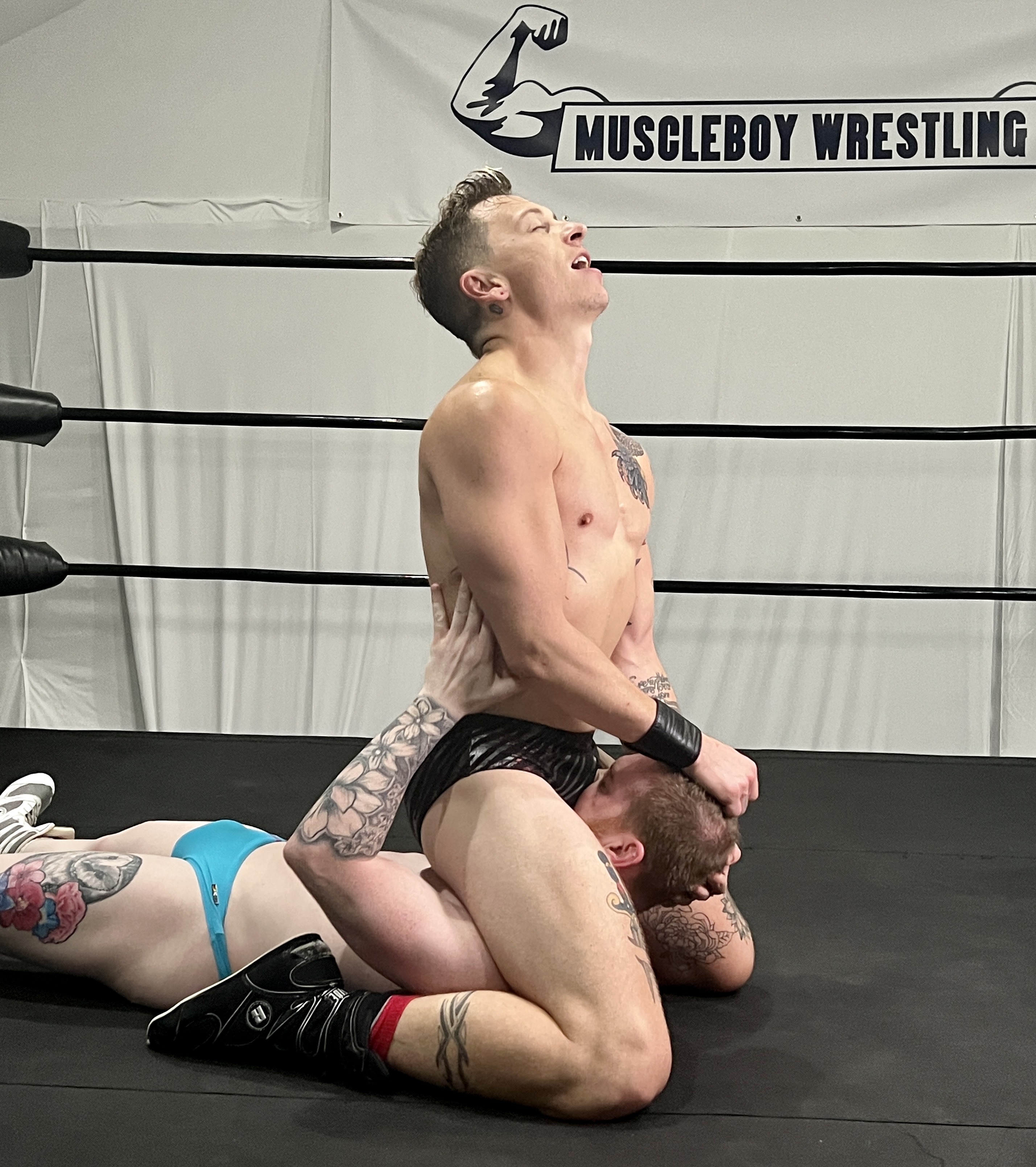 Who doesn’t want to SMASH Forrest Taylor? Everyone does. How perfect then for Aiden to be completing his heel turn when he receives a fresh piece of meat to play with in Forrest. Aiden dismantles our favorite mouthy jobber with total focus and ferocity. In between the wedgies and ball busting, Aiden executes some perfect pro wrestling moves too. He destroys Forrest all over the MBW ring with focus and savage like aggression. With the destruction in full swing, Aiden smacks on his signature finishing move the “rocking horse” as Forrest wails in agony! After that the action goes full tilt erotic as Aiden feeds Forrest his cock and balls over and over again. Forrest is a punk of a jobber but he also knows a hot cock when he sees one. He submits to Aiden’s charms and the rest of us get to watch the erotic fireworks and Aiden’s load spray all over Forrest’s beaten face and body.