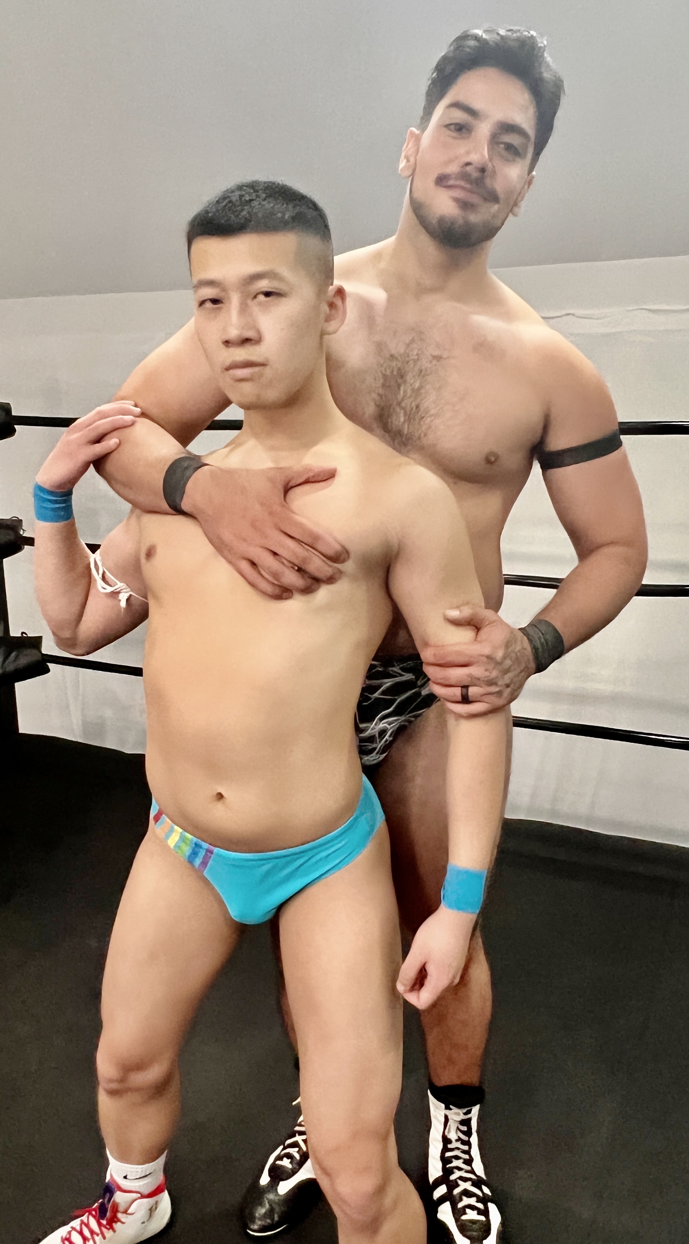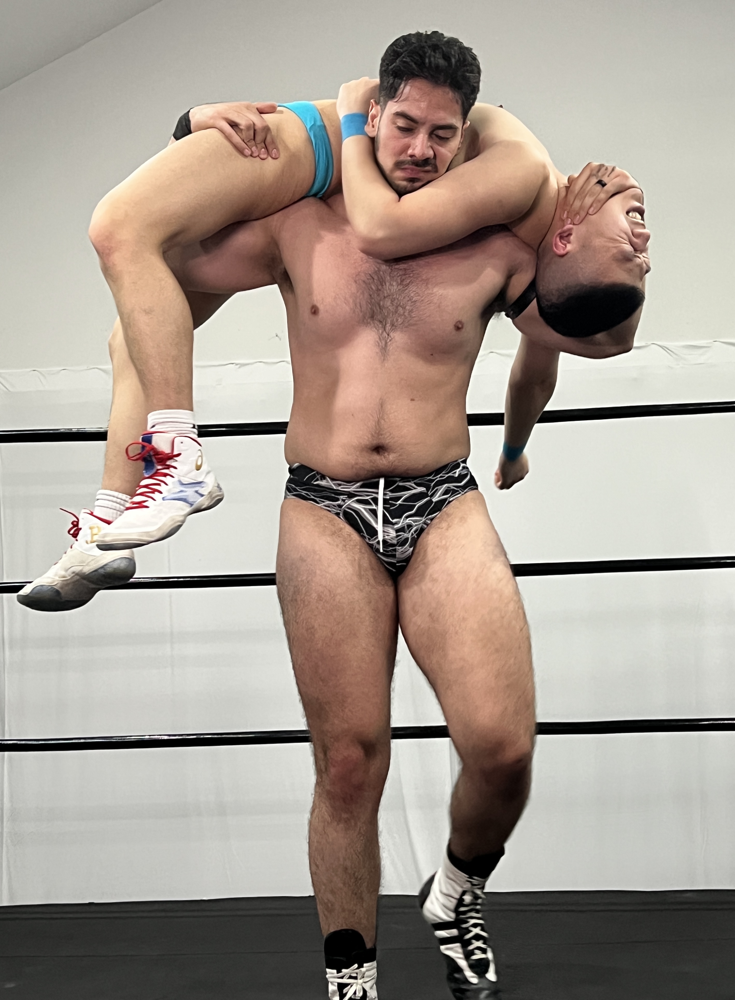 Dustin Torres is the walking IRL fantasy of what sexy and beefy can be. Thick is thick but thick AND gorgeously sexy is the only way to get your cock rock hard. The MBW boss thought it would be hot to see Dustin paired up with a hot twink. Watching Ricky worship Dustin’s massive arms and hairy pecs makes us think that Ricky doesn’t mind the matchup either! He is having the time of his life! When not making Ricky worship his body, Dustin obviously knows how to handle this boy toy. He tosses him around like a rag doll and stretches out Ricky’s back over and over again. Ricky has the flexibility of a gymnast but Dustin punishes and pushes him to his limits. Some Headscissors and backbreakers and piledrivers later, Dustin racks Ricky like he weighs 3lbs and then drills him with a tombstone that will leave you crumbled in a ball on the floor. Had enough? Not nearly. Dustin then feeds Ricky his cock, fucks him in the center of the ring from behind and fucks him on his back against the ropes. Ricky also rides Dustin’s dick like a champ, cowboy style. Dustin then seems to turn on a cum faucet in his loins when he shoots his load all over himself and finishes the scene by putting Ricky out with a sleeper. Thank you Dustin…and good night!