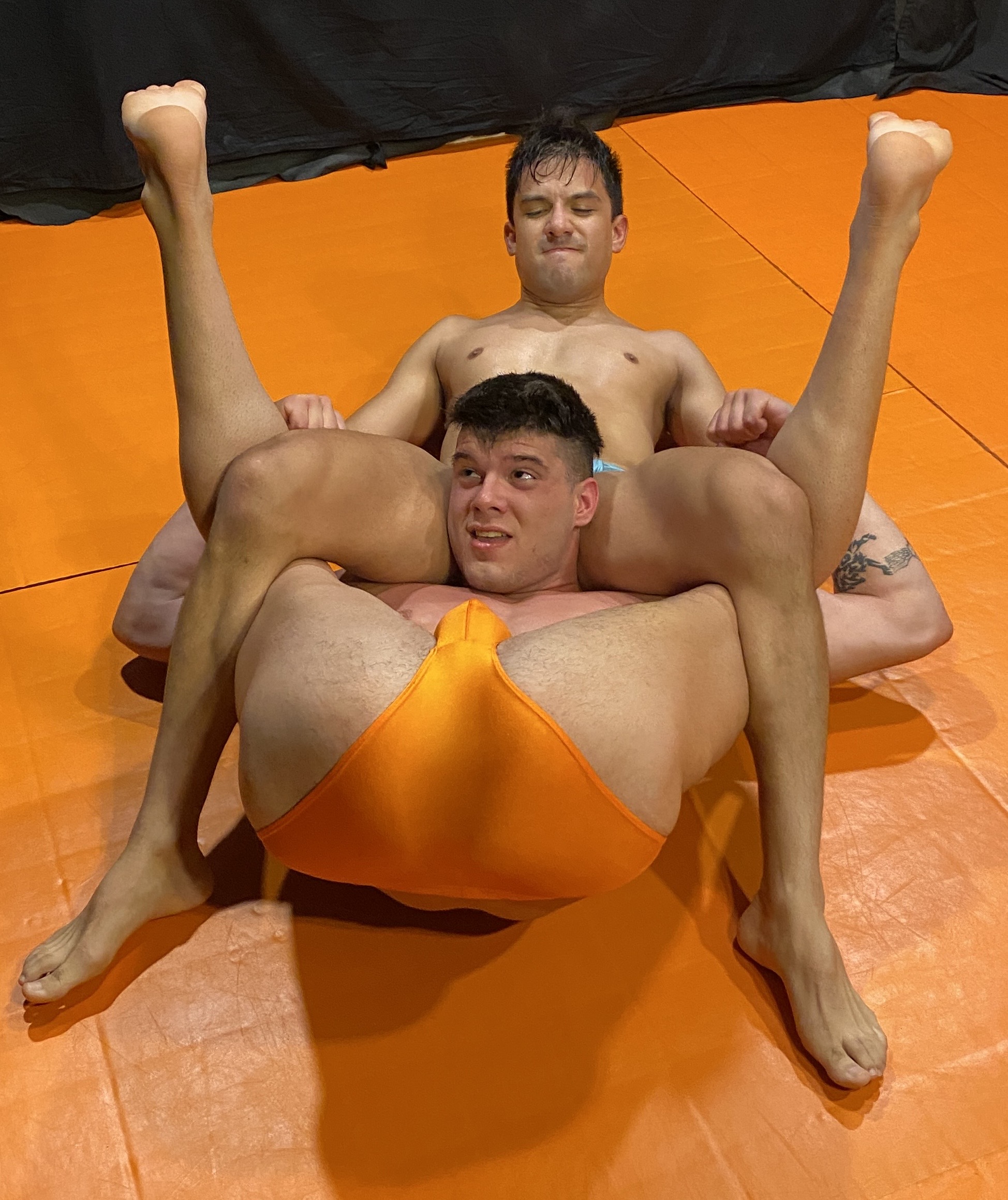 Chad Lambert is 6’4” and 190lbs. Yes fans you read that right! We matched up this towering wall of muscle that is Chad Lambert vs our scrappiest punk Jesse Zane. You may ask, how the F is Jesse gonna measure up against a guy that has THAT much height and muscle? You already know the answer fans, don’t you? Jesse has taken down big men many times before and this match is no different. Cutting down a tall tree with a small ax is a Zane specialty and it is SO hot watching him figure out a way to overcome the size difference and give himself a fighting chance. Jesse comes out of the gate swinging with wild body shots to try and soften up his opponent. Once he’s got Chad on the mat, their size takes a back seat to Jesse’s SKILL. He knows he’s gonna have to use pinpoint precision to try and have a chance. As Jesse cranks an extreme camel clutch and an EXTREME spladle on Chad you know our favorite cruiserweight has got this in the bag! Or does he? Chad bashes back with shots to Jesse’s body and a bearhug that could split the atom. Once he’s bashing Jesse’s body into the wall of the mat room and delivering an extreme camel of his own we knew this wasn’t going to be an easy pin for Jesse. The back and forth is hot but it’s at the hottest when Jesse eventually traps Chad in a dragon sleeper and then finishes him by drilling his neck into the mat. Sit back and take notes fans, Jesse will not be denied!