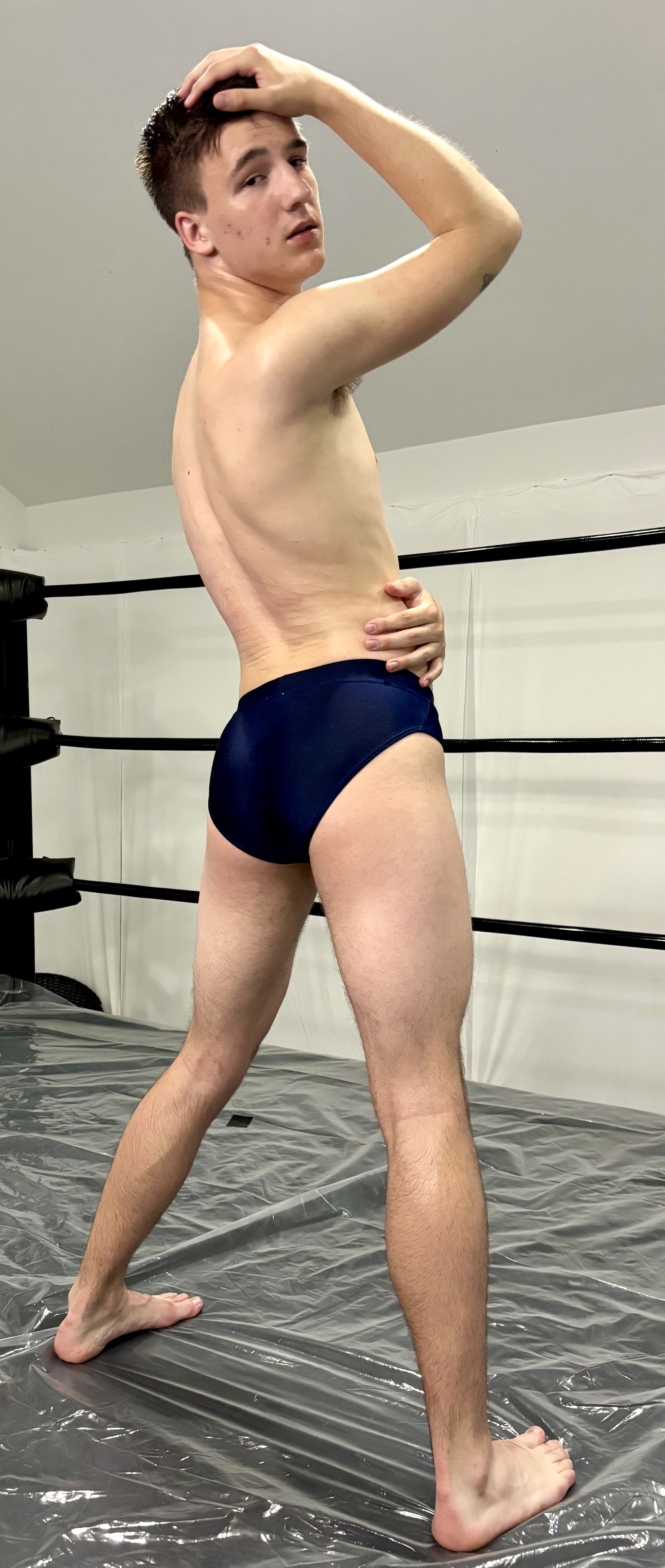 Oliver Marks is the sexiest twunk in all of underground wrestling that much is clear. His movie star looks and perfectly muscled body are a genetic wonder but often this can translate into jobber status. Not anymore and NOT against this opponent. He takes on the twinkiest twink in Zac Steele and right from the get go he is all over Zac and dominates him with a wide array of sexy moves and thunderous body blows. The fact that both are covered in oil and on a slick mat in the middle of the ring only helps amp up the hotness! Oliver has total control of the proceedings even while being slathered in oil and Zac can only arch his back and follow Sir’s orders like a good boy. As you probably noticed from his previous outing, Zac is bendy as fuck and Oliver takes that flexibility to the bank with holds that look like he will snap Zac in two. And as if Oliver couldn’t get any hotter, you may also have noticed the horse cock dangling between Oliver’s big legs that he uses to full advantage by pumping it into Zac’s throat and then slamming his ass all over the MBW ring. Against the ropes, on his back, on his stomach, or on his side, Oliver is gonna nail Zac one way or another. Once Oliver is spraying his load all over Zac’s perfectly perky ass you’ll be wondering how the heck Oliver wasn’t a total heel until now. Enjoy the hot oil wrestling and press rewind to your heart’s content fans!